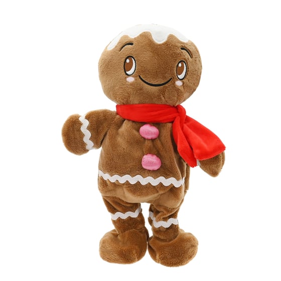 Add excitement to your Christmas celebrations with the Festive Magic Christmas Sing And Dance Gingerbread Man. Standing at 33cm tall, this plush festive character is full of charm with his smiling face, bright red scarf, and glittery button details. Press to activate and watch as he sings and dances, filling your home with laughter and holiday cheer.