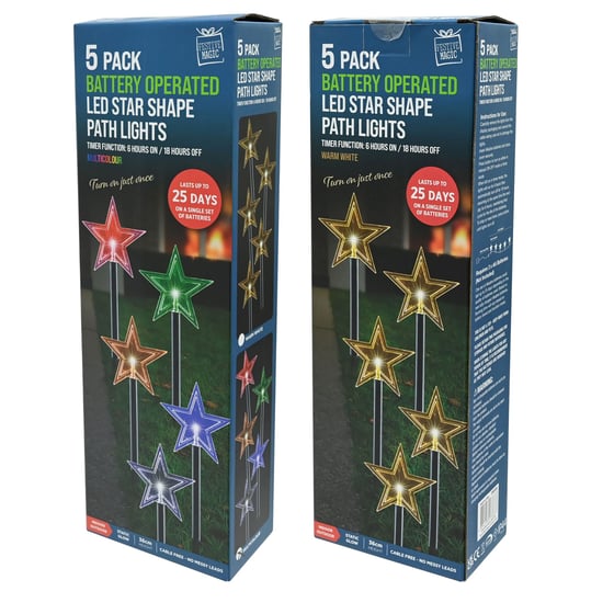 Festive Magic LED Timer Star Path Lights 5 Pack Outdoor Christmas Garden Lights Assorted