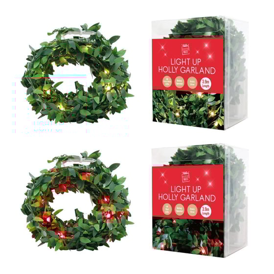 Festive Magic Light Up Holly Christmas Garland 3.9m Assorted