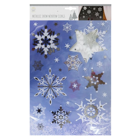 Illuminate your windows with these Festive Magic Metallic Snow Window Clings! Easy to apply and easy to remove, this window cling is perfect for the winter season.