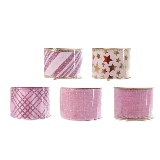 Add A Touch Of Whimsy To Your Festive Displays With The Festive Magic Pink Christmas Ribbon 50mm x 2.7m Assorted Set.