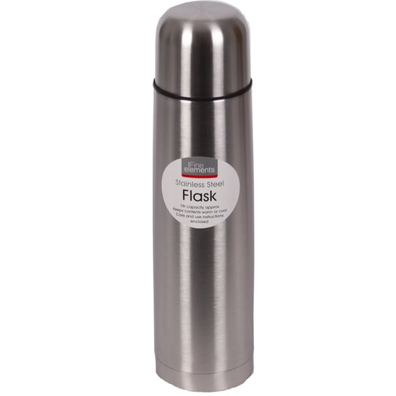 The Fine Elements Stainless Steel 1 litre flask is perfect for keeping the contents within the flask hot or cold making it ideal for liquids such as tea, coffee, soup etc and the 1 litre capacity allows for you to have more liquids to be held in a single container for easy transportation and storage.