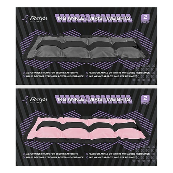 Enhance your workout with Fitstyle ankle/wrist weights! These 1kg weights come in a convenient 2 pack and can be worn on either your ankles or wrists for a versatile and challenging workout.