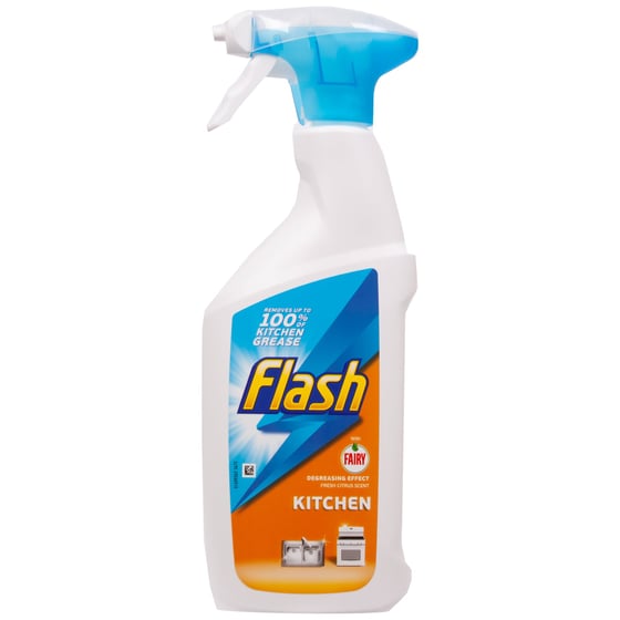 The Flash with Fairy task spray removes up to 100% of kitchen grease and has a degreasing effect of Fairy and will provide powerful cleaning for many areas in your kitchen.