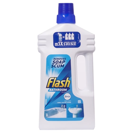 This Flash liquid bathroom cleaner will quickly dissolve grease and dirt which will leave your surfaces clean, shiny and freshly scented.
