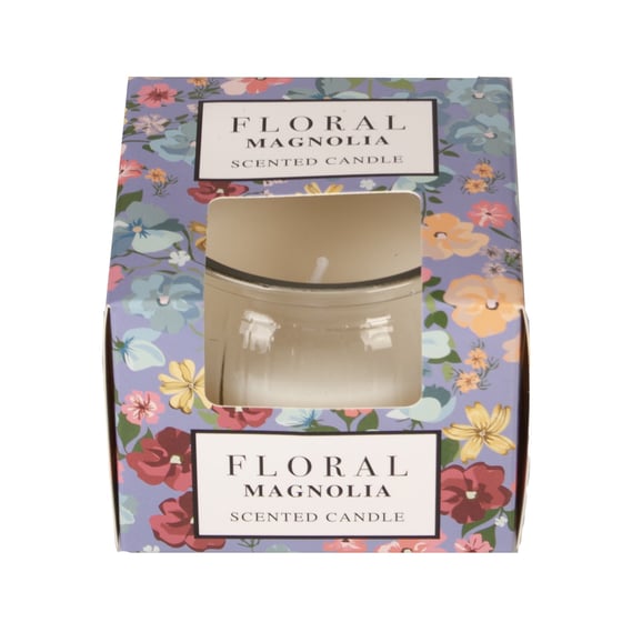 Indulge in the delicate and tranquil ambiance created by the Floral 3oz boxed glass jar candle.