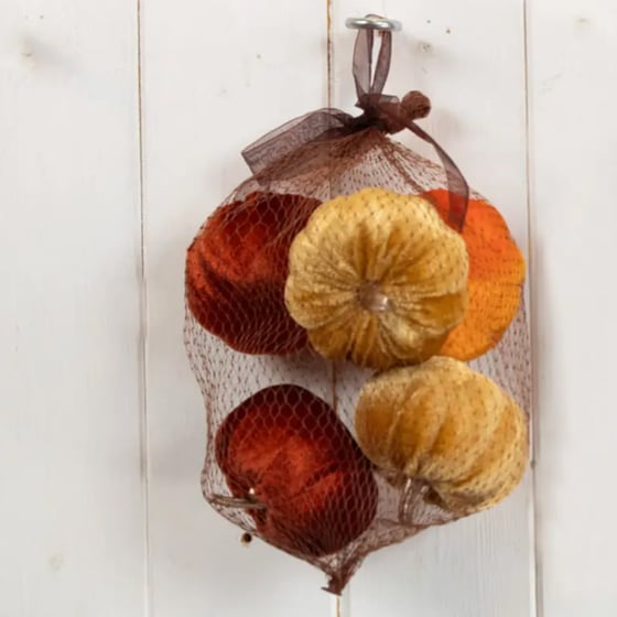 Florelle Halloween Five Velvet Pumpkins In Mesh Bag