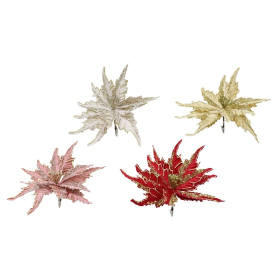 This elegant poinsettia is the perfect finishing touch to your trees, garlands, wreaths and table settings.