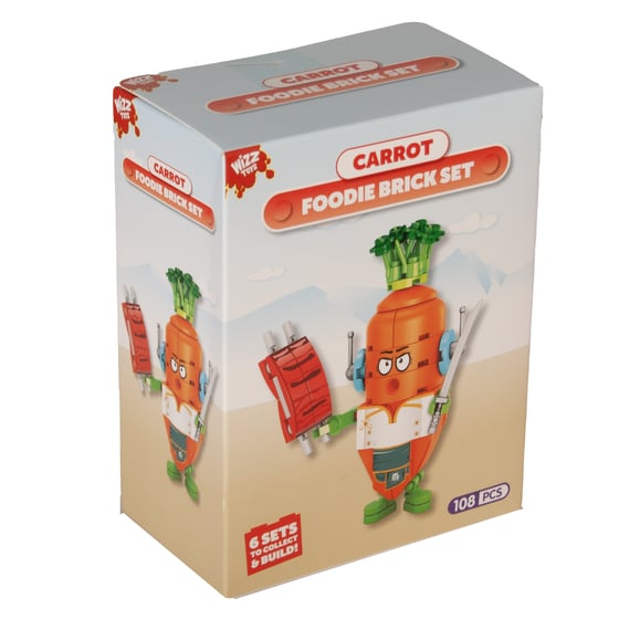 Build fun foodie characters with these brick sets – 6 quirky designs including Carrot, Avocado, Pineapple and more! 108 pieces per set.