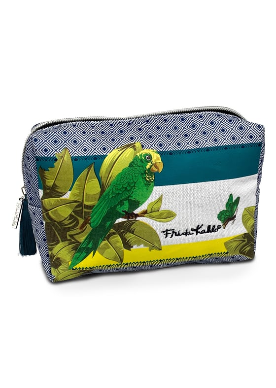 The make-up bag features a colourful parrot design with stylish patterns throughout and is topped off with a dark blue zip. The make-up bag is very spacious inside to fit all your make-up, toiletries and travel essentials in to.
