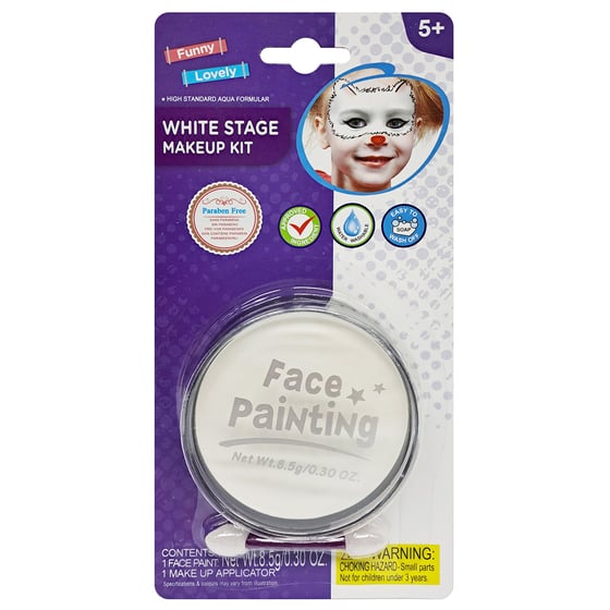 Get the whole family ready for the party season with this white stage makeup. White can be such an important base for all kinds of fancy dress looks, so this is the perfect base for all of your costumes. Become a cute kitten, or turn into a scary skeleton, the choice is up to you!