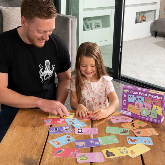 The paw print children's puzzles from Galt feature 22 2 piece puzzles in which your little one matches the animal with the correct tracks.