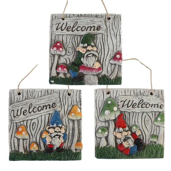 Garden Stone Hanging Square Gnome Welcome Plaque
