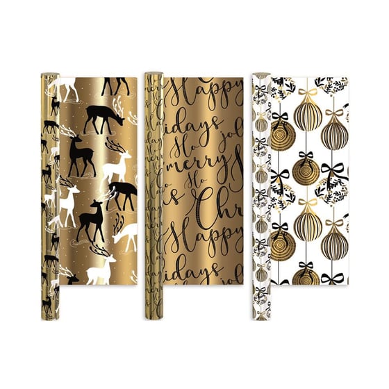 Giftmaker Foil Gold Christmas Wrapping Paper 1.5m Assorted