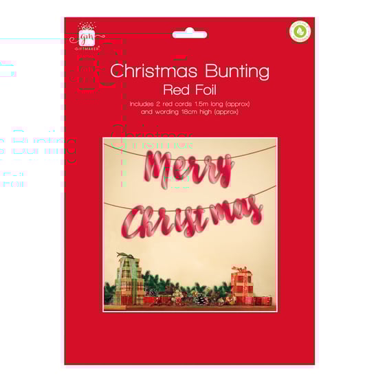 Welcome the holiday season with this beautiful Giftmaker Red Foil Christmas Bunting.