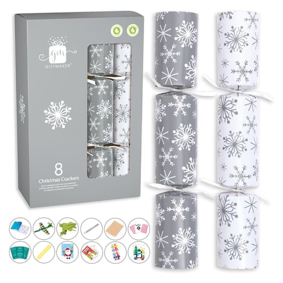 Giftmaker Silver & White Christmas Crackers 8 Pack