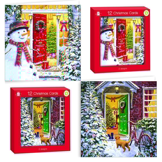 The pack of 12 cards comes with envelopes and contains 2 festive designs showcasing 2 lovely Christmas door designs. These eco-friendly cards are fully recyclable and plastic-free allowing you to spread festive cheer while also doing your bit for the environment.