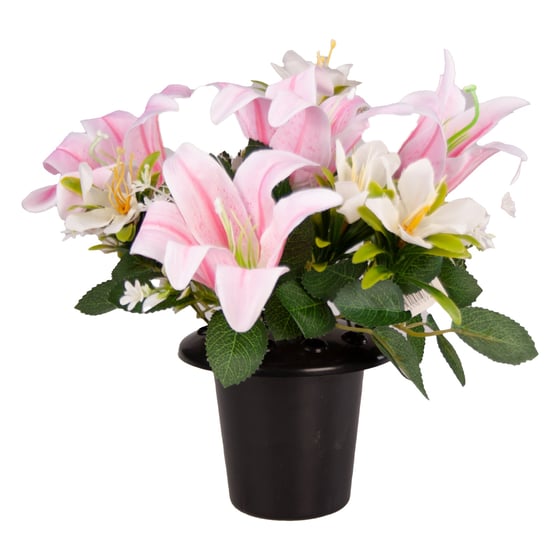 Grave Pot Lilies & Foliage Pink/ivory