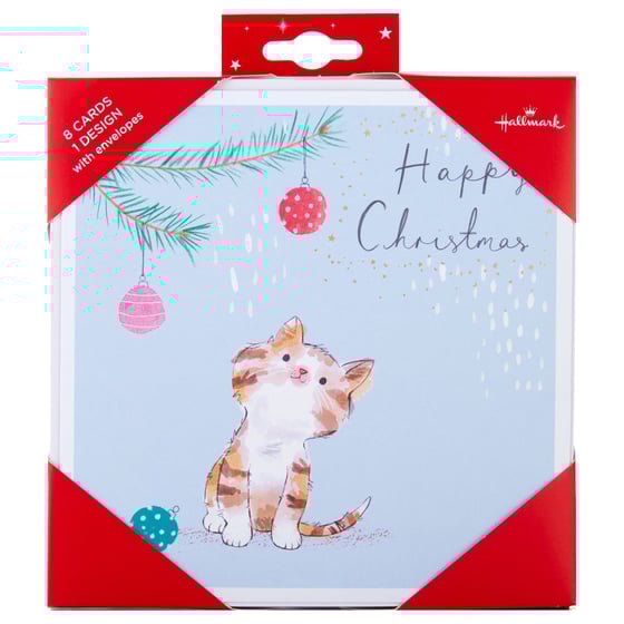 Spread festive smiles with the Hallmark Cat Charity Christmas Cards 8 Pack Portfolio. Featuring a single delightful design of a playful kitten gazing up at Christmas baubles beneath a snowy branch, these cards are sure to melt hearts. Each card carries the simple, joyful message “Have Fun!”, making them ideal for sending to family, friends, colleagues, and fellow pet lovers.