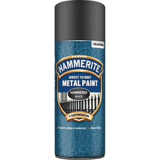 Hammerite metal spray paint can be applied directly onto rusty metal thanks to a formula that has been developed to be a primer, undercoat and topcoat in one.