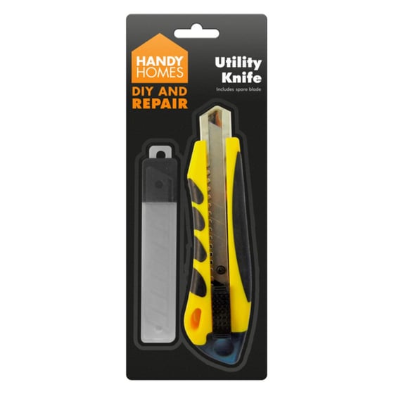 This utility knife from Handy Homes is perfect for all-purpose cutting including wallboard, cardboard, rope, plastic, and leather.