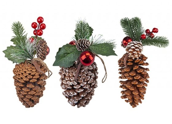 This Hanging Pine Cone Christmas Decoration is assorted and you will receive one design picked at random from our assorted stock. Orders for more than one item may receive different designs but could receive all of the same design. Unfortunately, we are not able to accept requests for a particular design before or after purchase.