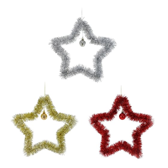Hanging Tinsel Star With Bauble Christmas Decoration 35cm Assorted
