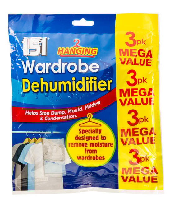 Keep moisture away from your clothes and out of your wardrobe with this 3 pack of wardrobe dehumidifiers. Especially effective in closed spaces with little airflow, the specialised crystals draw moisture and damp away from the surrounding area to be trapped inside the dehumidifier.