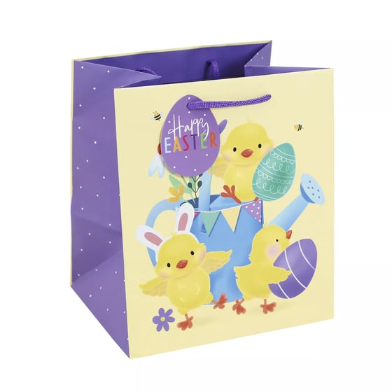 With strong handles and a coordinating egg-shaped gift tag that reads “Happy Easter,” this bag is ideal for family gifts, party bags, or school surprises. The colourful design adds instant seasonal charm, and the sturdy construction means it can be reused again and again. Choose from multiple sizes to suit your needs and make every Easter moment more joyful.