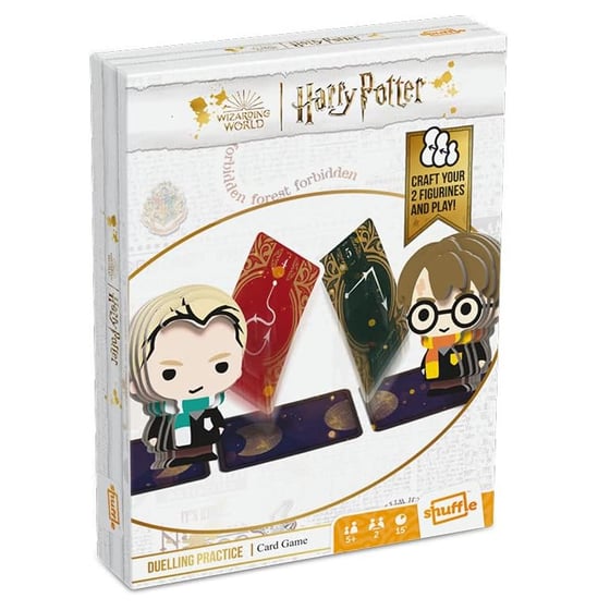 Become a master wizard with the Shuffle Harry Potter Dueling Practice Card Game! Practice your dueling skills with your favourite characters from the magical world of Harry Potter. Take your game to the next level and show off your skills to your friends. Perfect for any fan looking to sharpen their dueling abilities. Let the games begin! Harry and Malfoy face themselves in the duel and must try to bump themselves off the duel stage. Both characters are included as great craft figures and are used as play figures. Players slip into the role of Harry and Malfoy and compete against each other. Both players draw a spell card and perform the spell. The stronger spell sends the opponent back in the duel. Winner is who, with some tactics and a pinch of luck, pushes his opponent out of the duel.