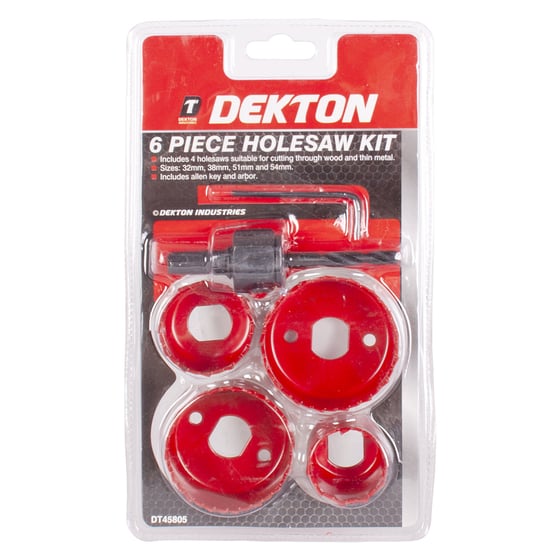 Turn any drill into a hole saw quickly and with ease, using this six piece holesaw set from Dekton.
