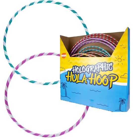 These fun Holographic Hula Hoops are constructed of durable plastic and feature a bright colour with striped holographic elements and internal rattle beads. These hula hoops are made from durable and harmless plastic and are safe for children. These high-quality hula hoops come in a range of vibrant colours!