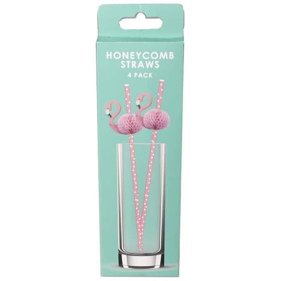 Honeycomb Flamingo Straws 4pk