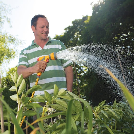 The front trigger of the spray gun and spray head have soft-touch grips, so you can water a large area in comfort and without your hands getting tired. The smooth flow control allows you to quickly change the amount of water being sprayed – push it forward with your thumb for maximum power, or pull it back to reduce water usage by up to 50%.