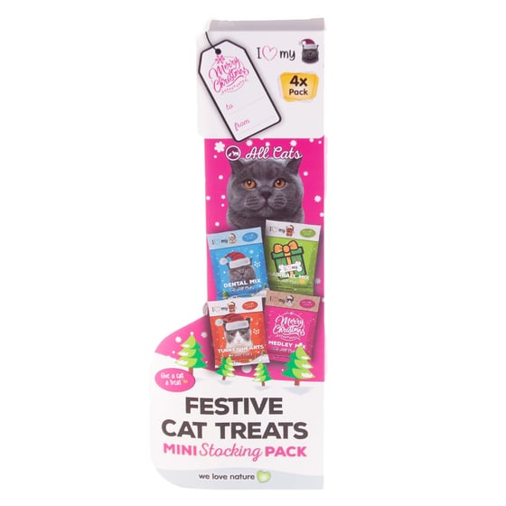 Delight your cat with our I Love My Cat Festive Cat Treats 4 Pack! These delicious, high-quality treats are sure to make your feline friend purr with joy.