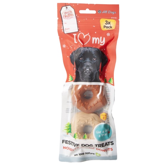 Indulge your furry friend this festive season with the I Love My Pets festive donut dog treats 3 pack.