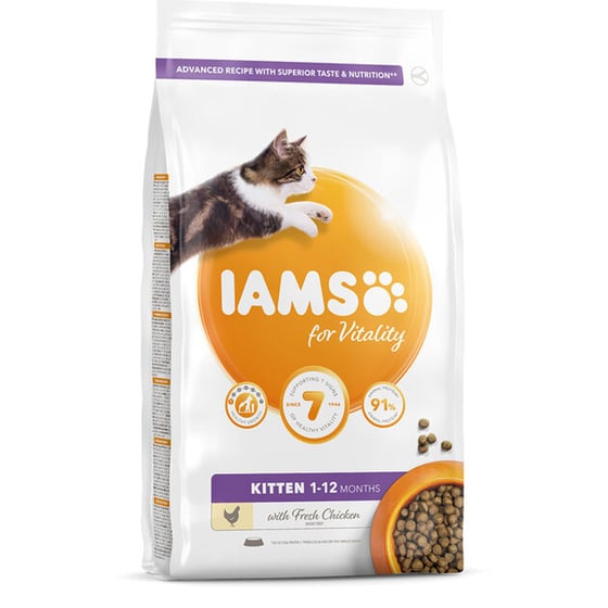 Nurture your kitten's growth and well-being with IAMS For Vitality Fresh Chicken Kitten Food.