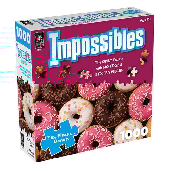 Think you’ve mastered jigsaws? Think again. The Impossibles Donuts Puzzle turns everything you know about puzzling on its head—with no corner or edge pieces to guide you and 5 extra pieces added just to throw you off. Featuring a tempting collage of iced and sprinkled donuts in chocolate, strawberry and vanilla, this is a deliciously difficult puzzle that’s as eye-catching as it is mind-bending. Perfect for puzzle lovers aged 12 and up who want something far more challenging than the average box.