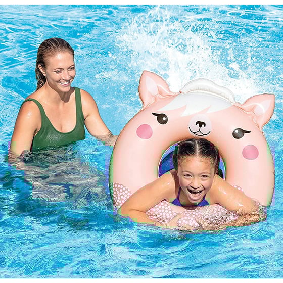 Welcome summer with the Intex 76cm Inflatable Animal Ring Float! Make a splash with this must-have pool accessory featuring fun and colorful animal designs.