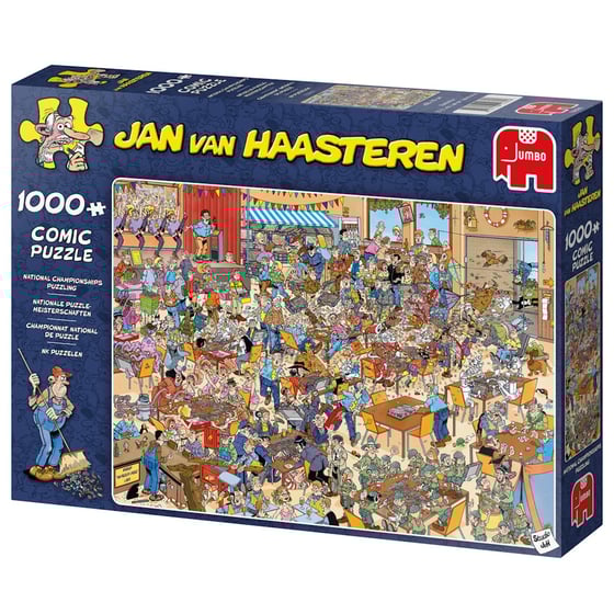 The National Championship is the title of this fantastic jigsaw from Jan Van Haasteren and this illustration is guaranteed to make you chuckle as you piece it all together. This jigsaw showcases a busy hall where the puzzle championship is being held. As always Jan's humor has been put into this image, so keep an eye out!.