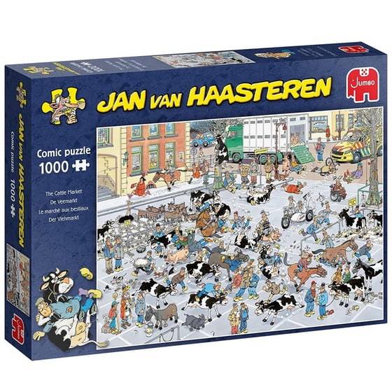 Enjoy hours of entertainment with the Jan Van Haasteren The Cattle Market jigsaw puzzle. With 1000 pieces, this puzzle will provide a challenging and fun experience for puzzle enthusiasts. Perfect for family game nights or a relaxing solo activity. Piece by piece, bring this lively market scene to life!