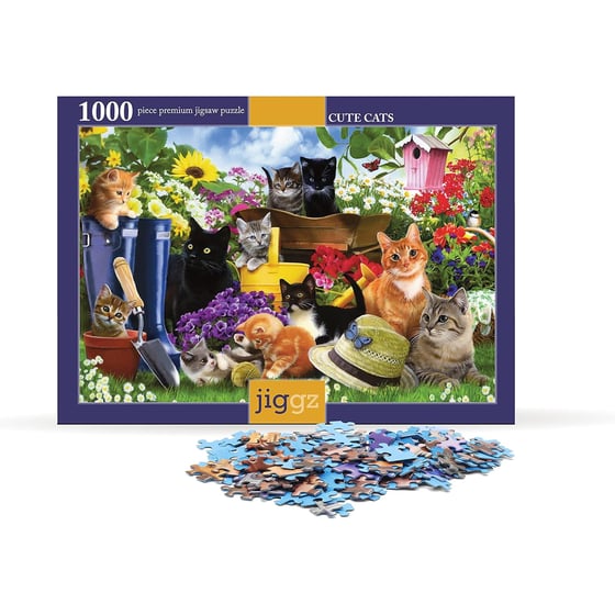 Unwind With The Jiggz Cute Cats Jigsaw Puzzle 1000 Pieces And Escape Into A Charming Garden Scene Filled With Playful Kittens.