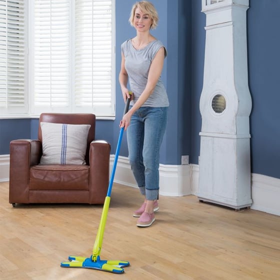 The mop head is super absorbent and will hold up to three times its weight in liquid, so you can mop an entire floor before you need to wring it out. The mop has been designed to reach every single area of your home making cleaning your home, an absolute breeze.