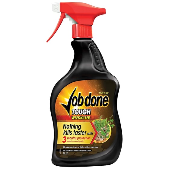 Job Done Ready To Use Tough Weedkiller is a powerful solution for tackling unwanted vegetation in your garden. This 1-litre formulation comes ready to use, eliminating the need for mixing or measuring. Perfect for targeting stubborn weeds in paths, driveways, and garden areas, this weedkiller is designed to deliver effective results against a broad spectrum of common garden weeds. The convenient spray application makes it easy to treat specific problem areas with precision, while the generous 1-litre volume provides ample coverage for multiple applications. Whether you're maintaining a pristine garden or reclaiming overgrown spaces, this tough weedkiller helps you maintain control over unwanted plant growth. For best results, apply during active weed growth when plants are green and leafy. Always follow the application instructions carefully for optimal effectiveness.
