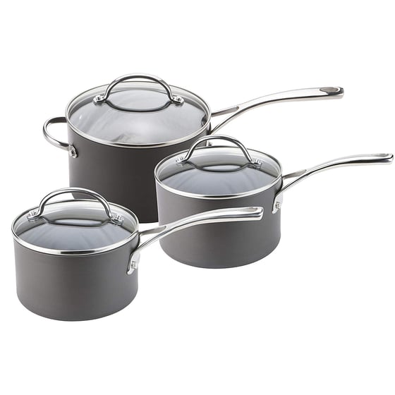 - Includes a 16cm saucepan, an 18 cm saucepan, and a 20cm saucepan