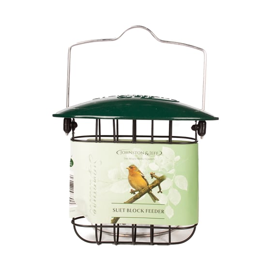 Keep suet protected, mess to a minimum, and the right birds coming back with the Johnston & Jeff Green Cast Metal Suet Block Feeder—a compact, heavy-duty solution for year-round feeding. With a solid cast metal lid and tough steel mesh cage, it holds suet blocks securely in place while offering safe access for small UK garden birds like blue tits, great tits, robins, and nuthatches. The design naturally deters squirrels and larger birds, making it ideal for more focused feeding in smaller garden spaces.