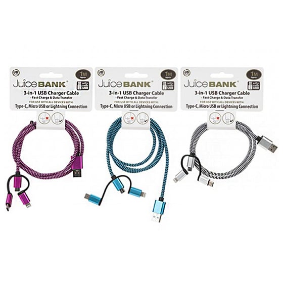 - 3 connectors (USB Type-C, Lightning, Micro-USB)