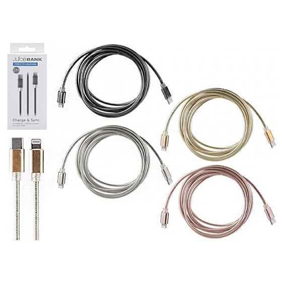 Juice Bank USB-C - Lightning Metallic Charging Cable 2M Assorted