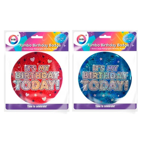 This fun birthday badge is not only jumbo but colourful too. Featuring a shimmering happy birthday design, the badge comes with a stand, hole and pin, meaning it can be pinned on, hung up or even stood up somewhere sure to grab the attention of your party-goers. Whether they're turning 15 or 50, it'll make their day.