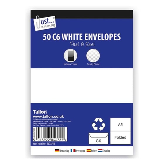 Just Stationery C6 Envelope White Peal And Seal